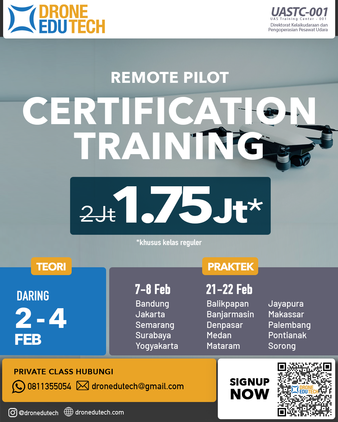 Pelaksanaan pelatihan 2 hari secara luring, tanggal dan lokasi mengikuti jadwal yang tersedia dari Drone [...]
