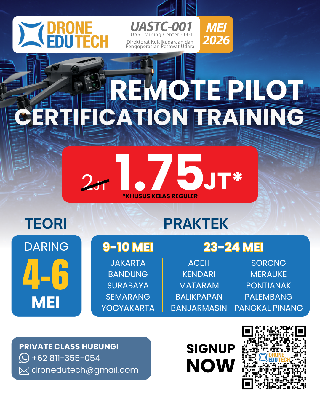 Drone Edutech sebagai pemegang UASTC-001/Unmanned Aircraft System Training Center-001 yang diberikan oleh Direktorat Kelaikudaraan dan Pengoperasian Pesawat Udara (DKPPU), mengundang para pilot dan calon pilot drone untuk memiliki Remote Pilot Certificate atau yang sering dikenal dengan Sertifikasi Pilot Drone resmi dari DKPPU melalui website SIDOPI GO dengan mengikuti Remote Pilot Certification Training dari Drone Edutech.